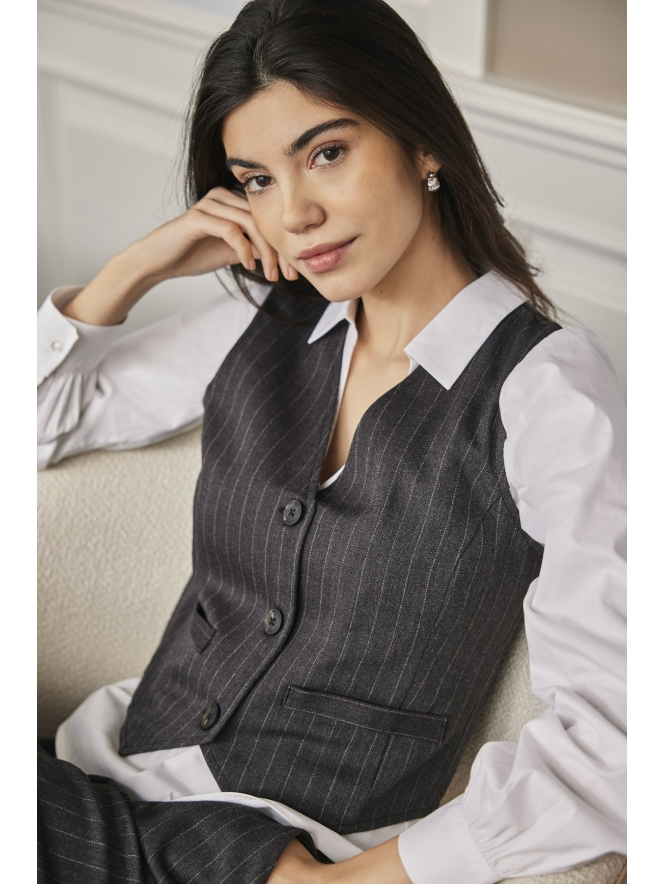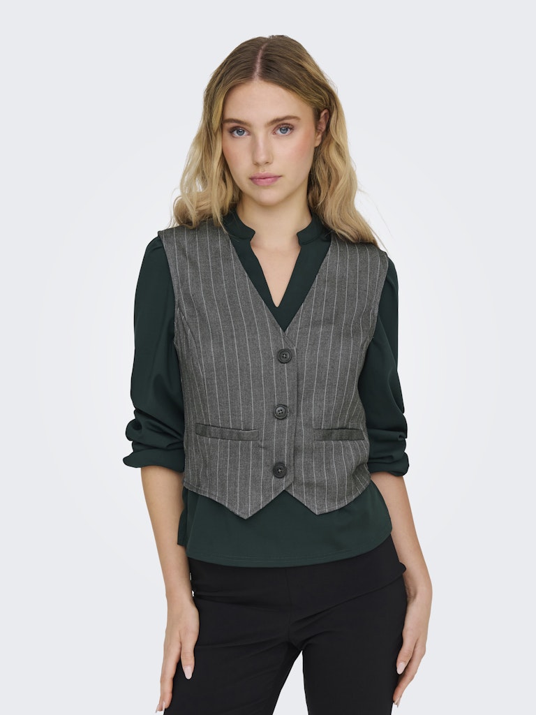 Giletje met pinstripe van JDY. Leuk over een witte blouse en te combineren met de bijpassende broek.
