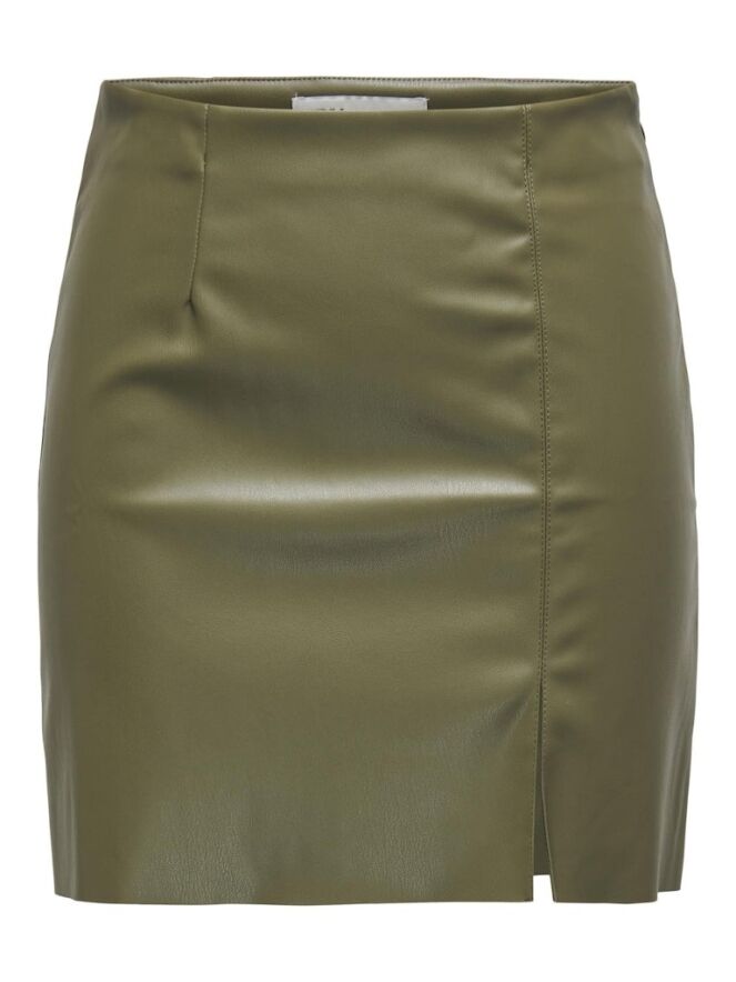 Dit rokje van imitatie leer heeft een kleine split aan de voorkant. Het rokje sluit met een blinde rits in de linker zij. Combineer het met een stoere boot, warme trui of sweater en een warme panty. Dan ben jij 100 procent trendy!