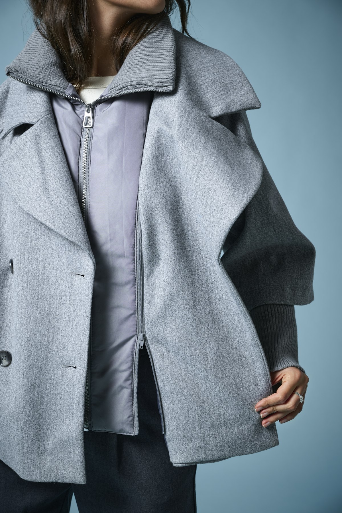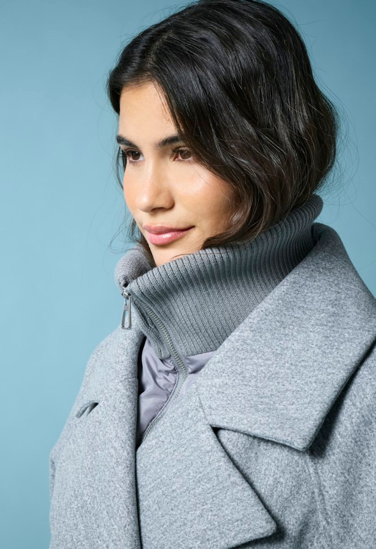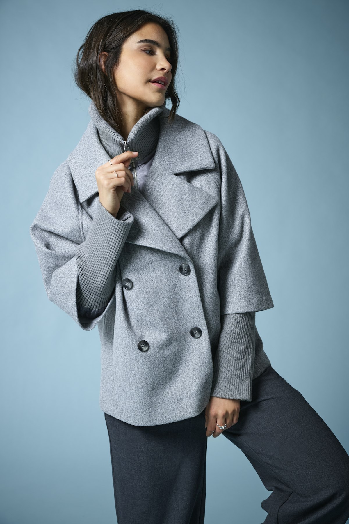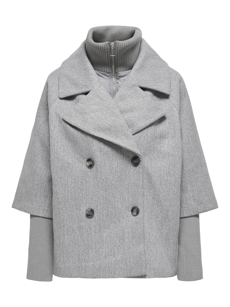 Korte trenchcoat met een twist! Deze warme variant heeft een uitritsbare binnenkant met warme kraag. Met dubbele rij knopen.