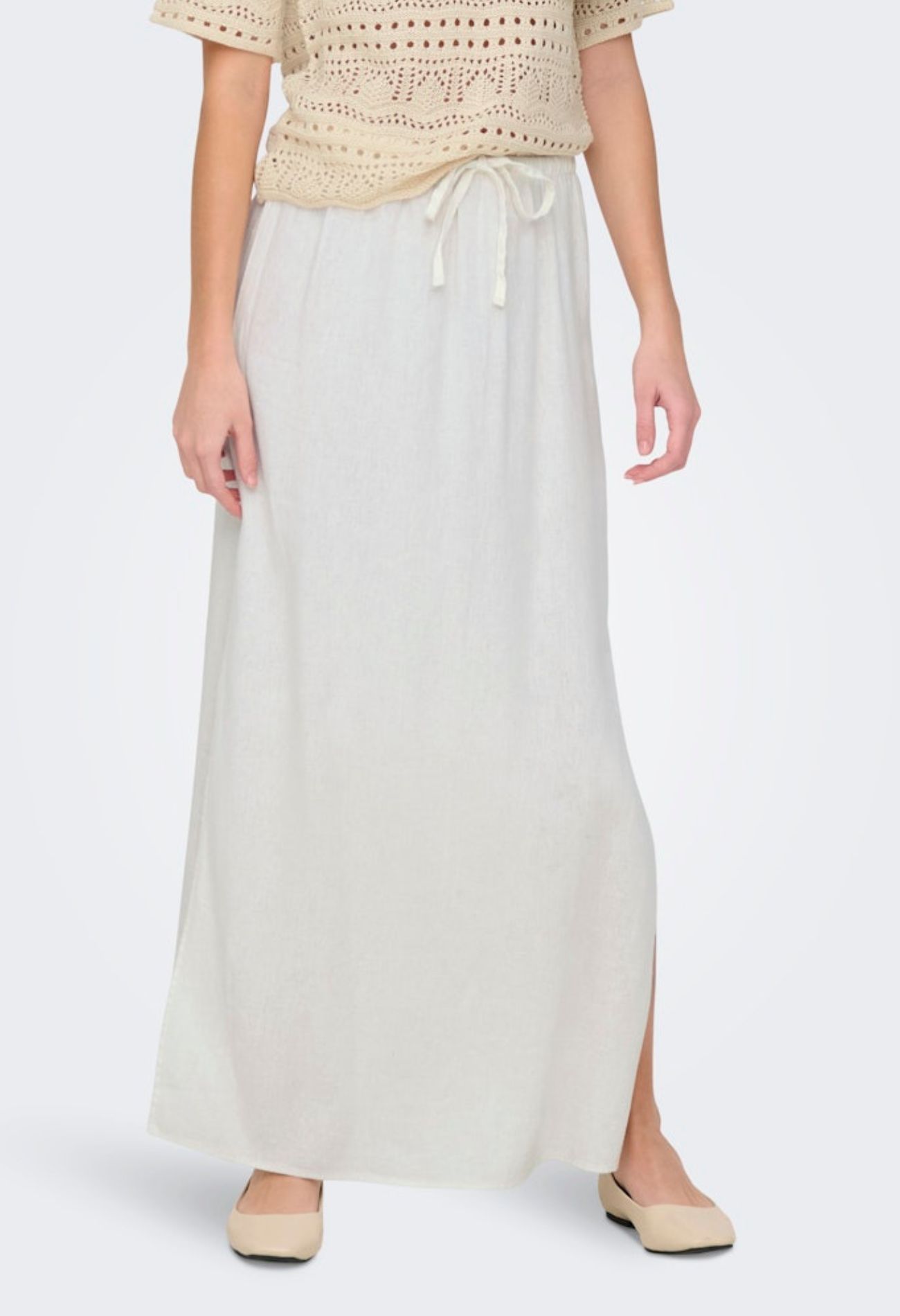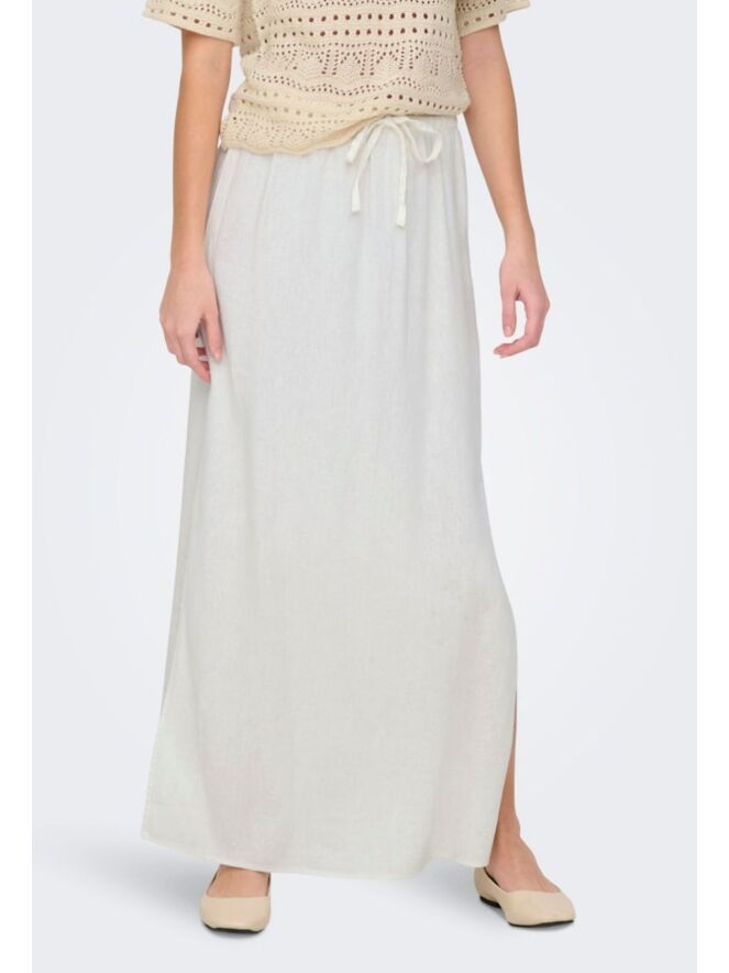 Nieuw dit jaar in onze linnen look collectie van JDY is de lange rok! Draagt comfortabel en luchtig op warme dagen. Deze rok heeft een maximale lengte met splitten aan beide kanten.