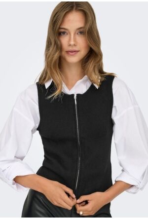 Zie er ten aller tijde stijlvol uit met een giletje! Combineer het met een effen blouse en pantalon en je komt stijlvol voor de dag! Dit giletje heeft 2 sier paspelzakjes.