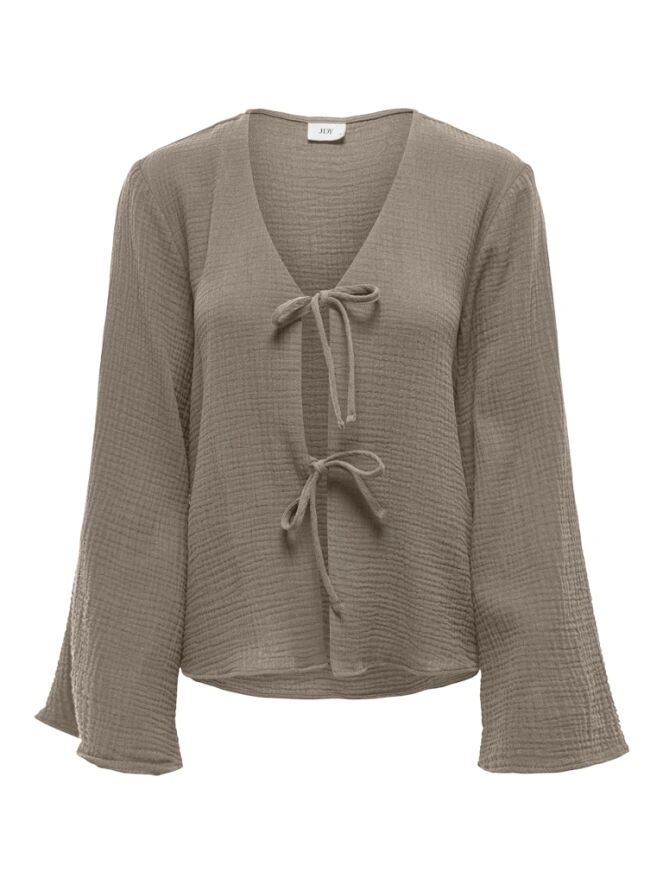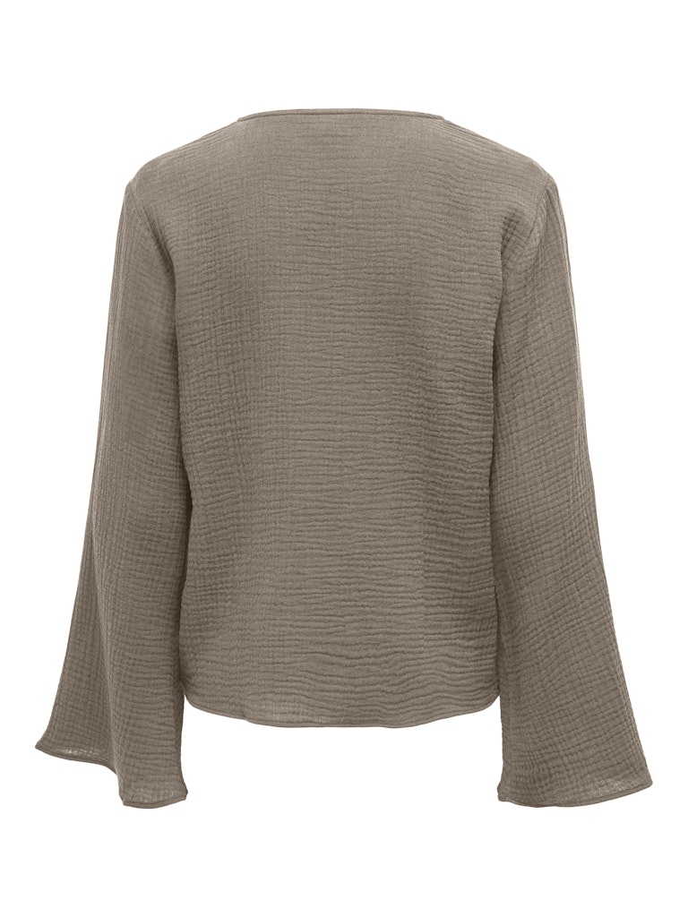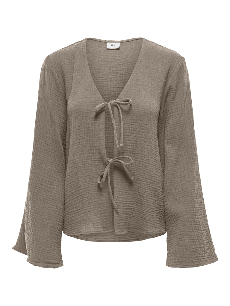 Hoe leuk is deze blouse met strikjes! De top heeft een mooie lichte kleur. De strikjes geven je look net die extra touch en val je zeker mee op. Stijl de top met een singlet op een mooie blauwe jeans gecombineerd met leuke sneakers en je bent helemaal klaar om de deur uit te gaan!