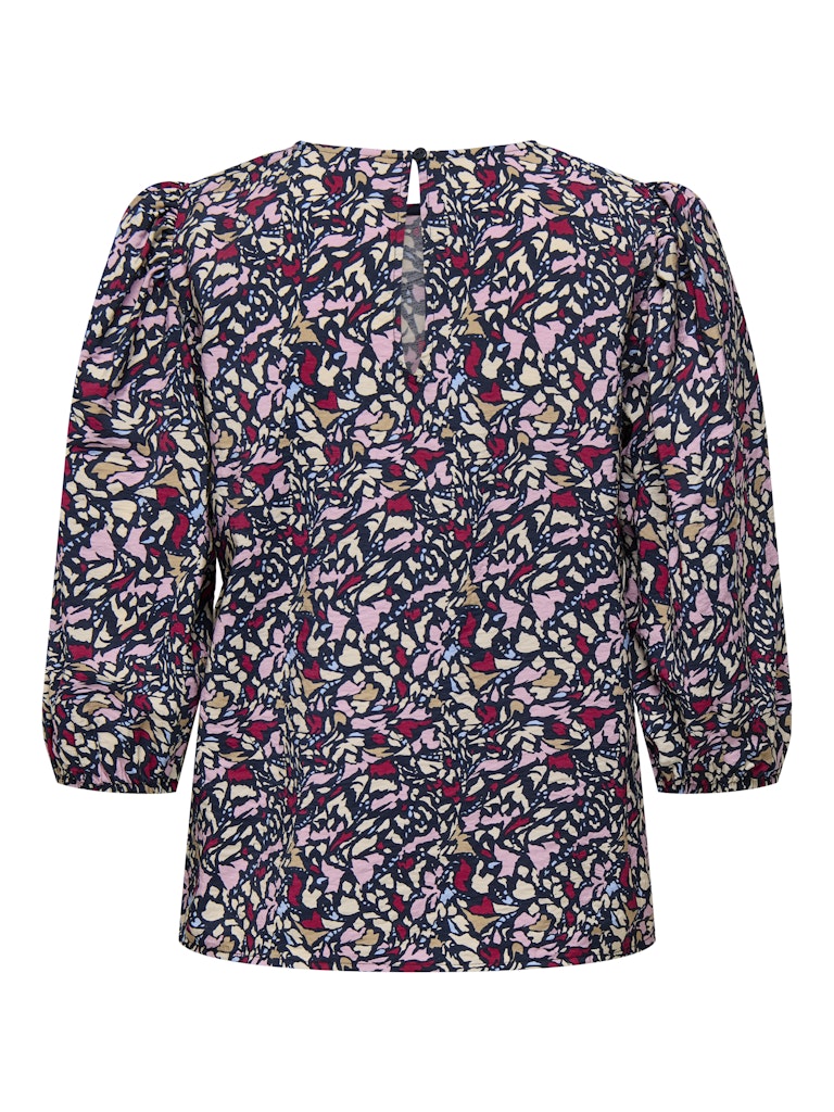 Fraaie multicolor top van JDY met driekwart ballonmouw. Deze top valt wat wijder uit en heeft een ronde hals met achterop een druppeluitsparing met knoopje. Leuk te dragen op een rok of gewoon casual op een denim.