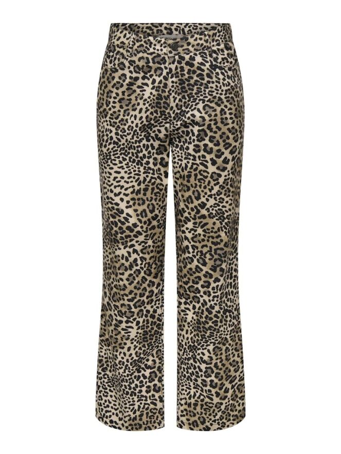 Stoere jeans met panterprint! Dit is een 5 pocket model en heeft rechte wijde broekspijpen. Van precies dezelfde print en stof is er ook een denim shacket verkrijgbaar met art.nr. 15343450. Voor je ideale panterpak. Lekker co-ord or not!