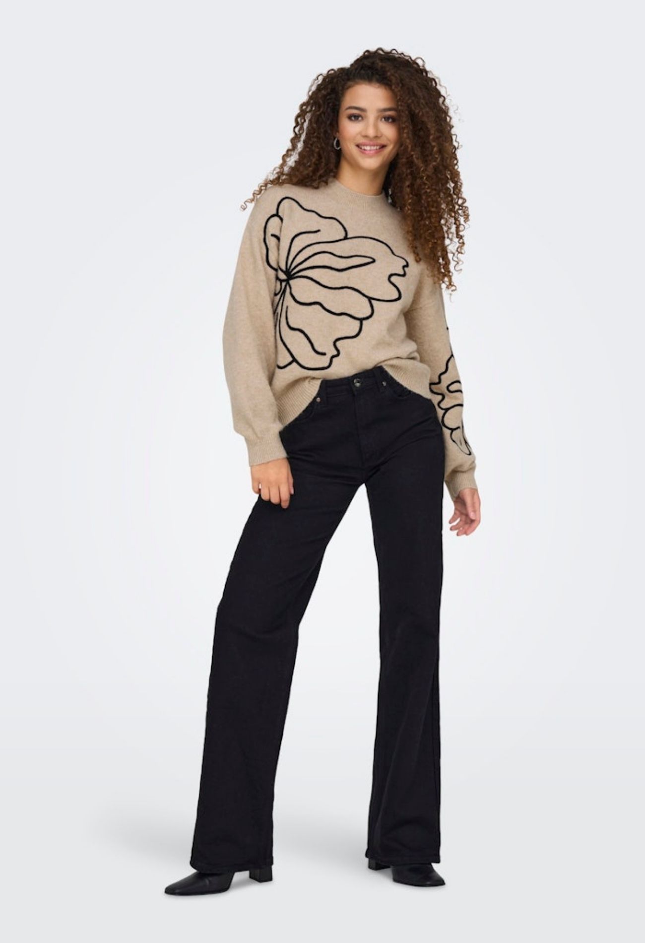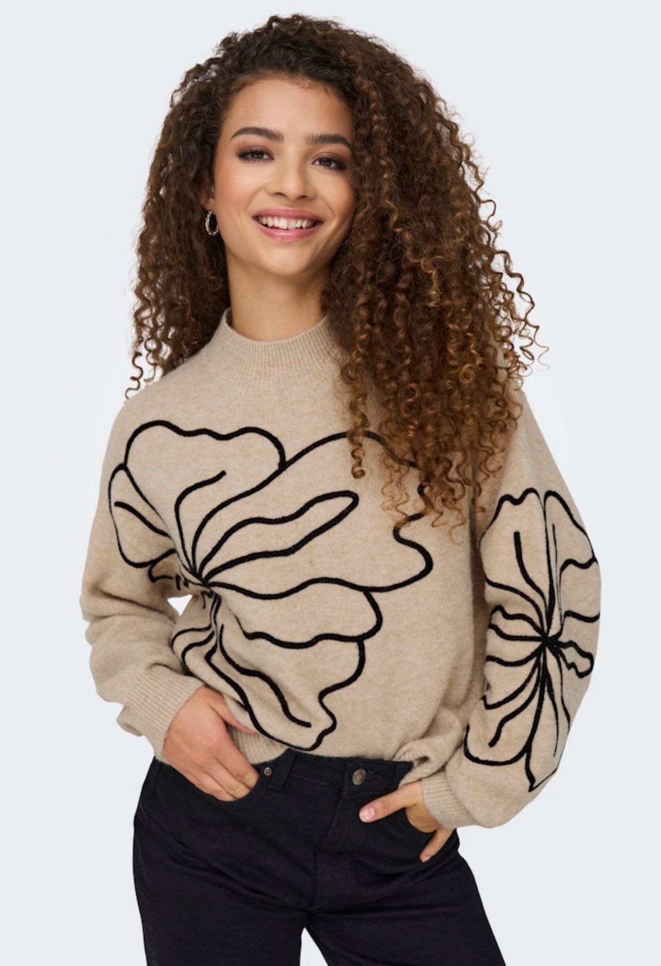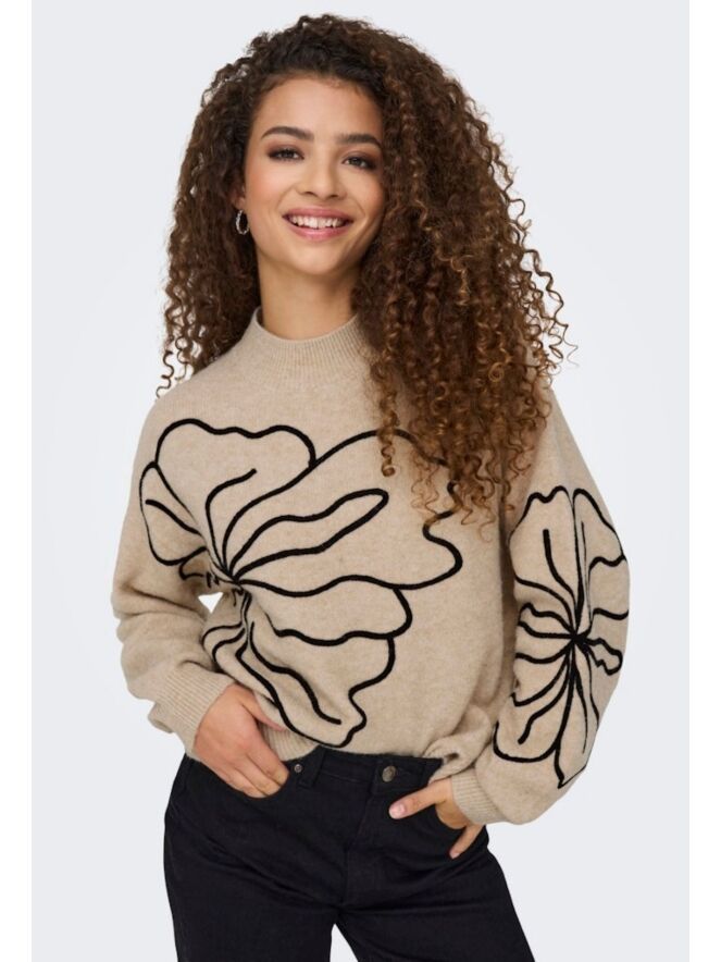 Prachtige trui met mooi bloemen silhouet. Deze trui bevat een klein percentage wol en laat zich perfect combineren met jeans en rokken pantalons. Hoe ga jij dit toppertje combineren?