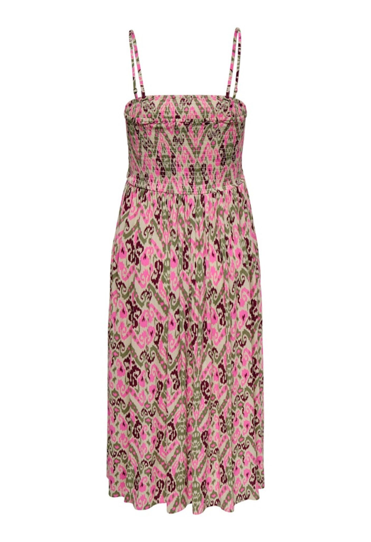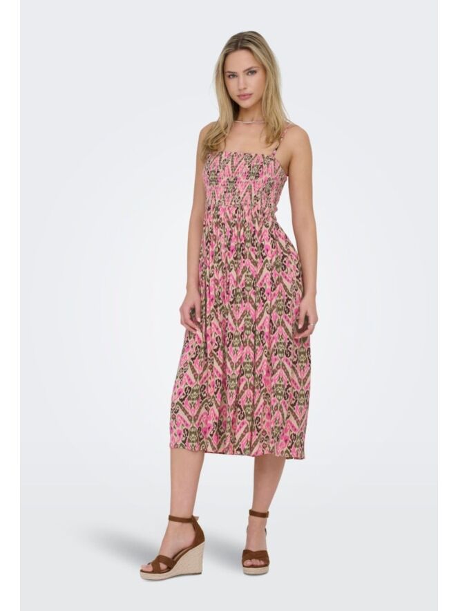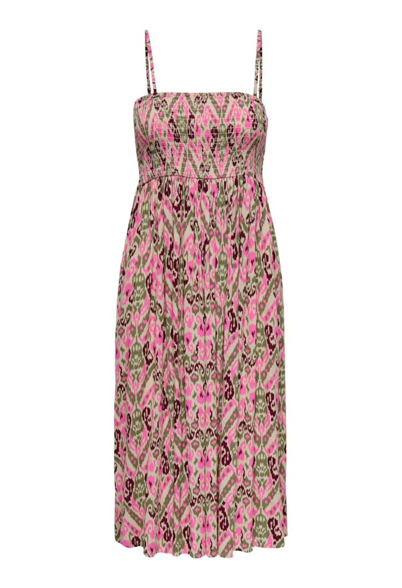 Deze damesjurk is een echte must-have voor de zomer! Dankzij de afneembare schouderbandjes kun je de jurk zowel met bandjes als strapless dragen. Extra handig: je kunt deze multifunctionele jurk ook als rok stylen. Het comfortabele smokwerk rond de borst zorgt voor een mooie pasvorm en een vrouwelijke uitstraling. Gemaakt van een luchtige stof, perfect voor warme dagen en veelzijdig genoeg voor elke zomerse gelegenheid.
