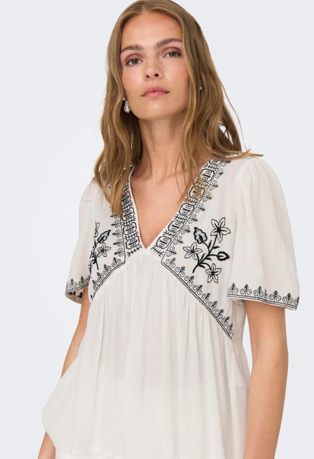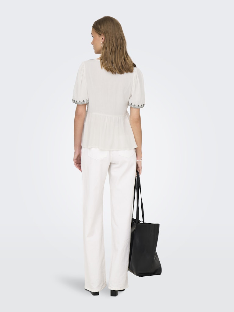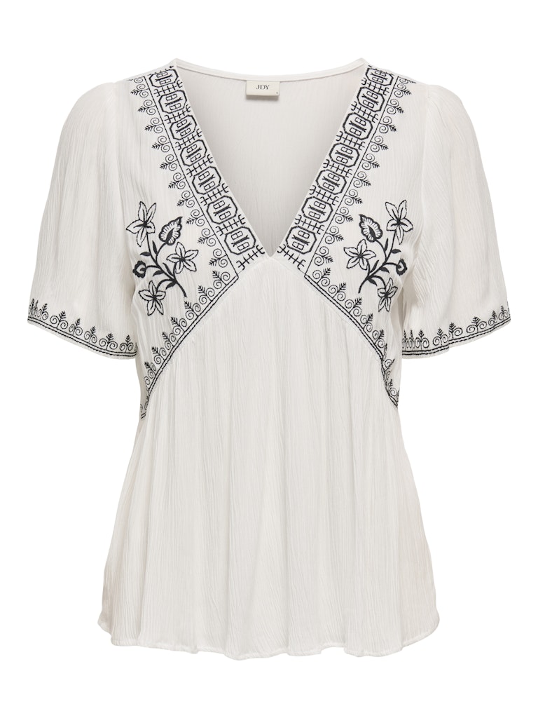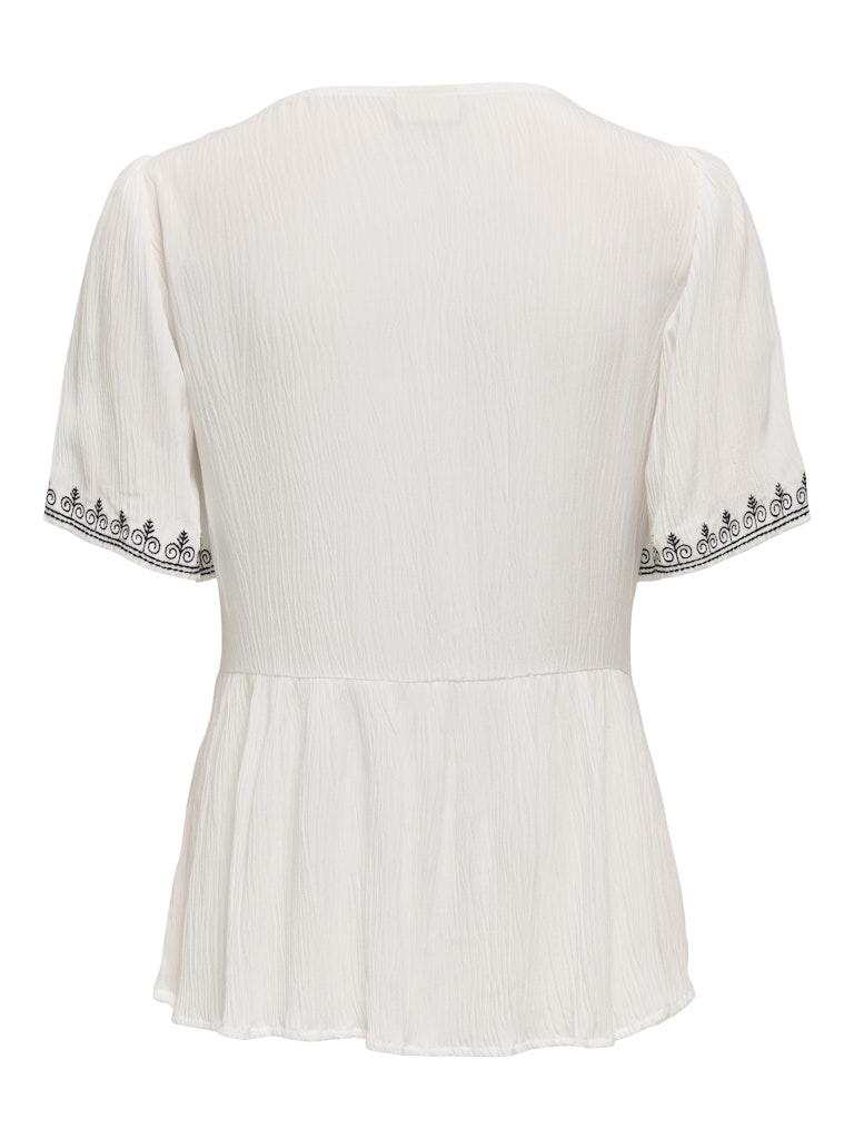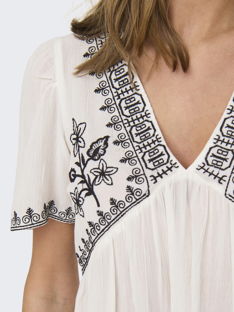 Met deze beauty steel jij de show! Deze witte top met zwarte borduring is helemaal on-trend en perfect voor de warme dagen. De embroidery maakt de top extra zomers! Stijl dit item met een leuke short of rok, zo loop je er tijdens de hot days helemaal trendy bij!