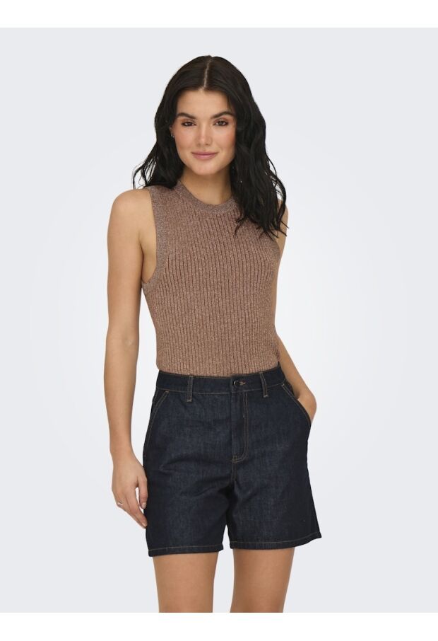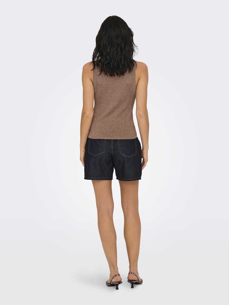 Deze leuke singlet is een dunne variant met fijn verticale banen in de stof met een fijne lurex glitterdraad. De stof is lekker flexibel en draagt hierdoor comfortabel. Combineer het met een mooie jeans of denim korte broek. Is het wat fris? Draag er een leuke blazer over!