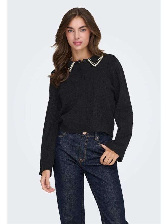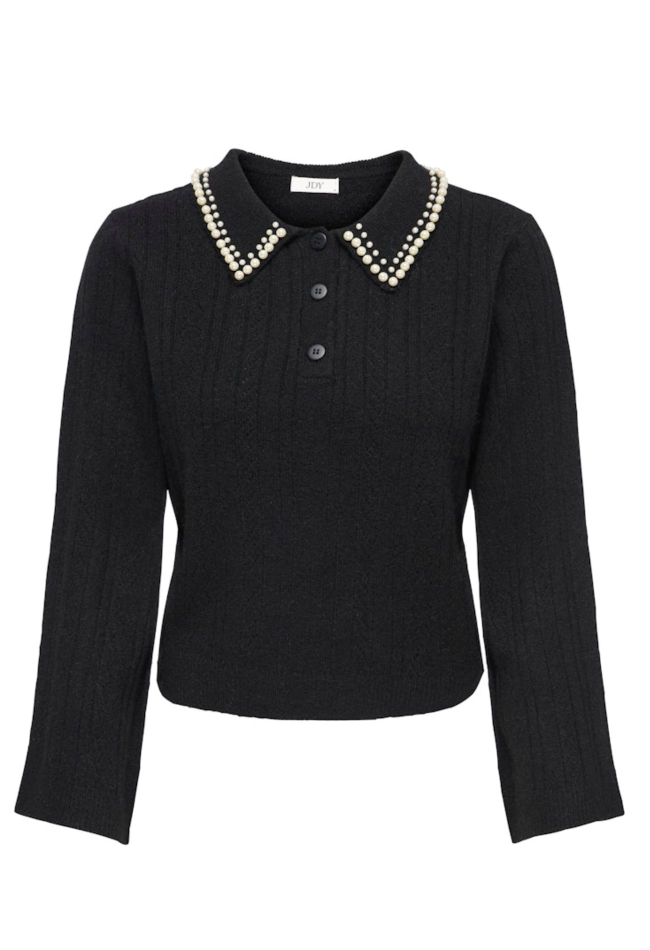 Prachtige trui van JDY met parelkraagje voor een sjiecke iets preppy look! Deze trui heeft een verticaal kabelpatroon en beval 5% wol.