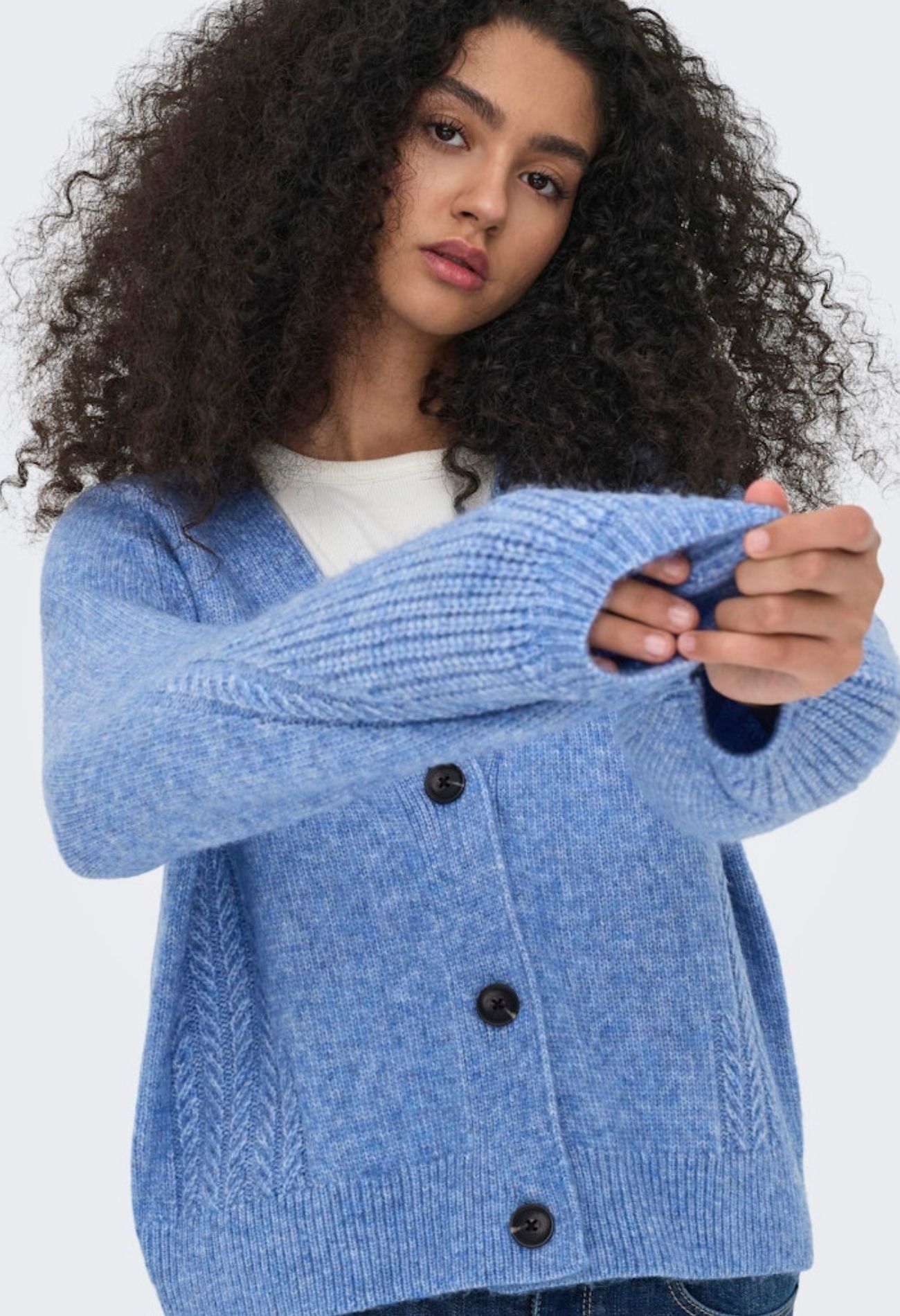 Heerlijk gebreid iets wijdvallend vestje van JDY. Makkelijk te dragen over een leuke blouse.
