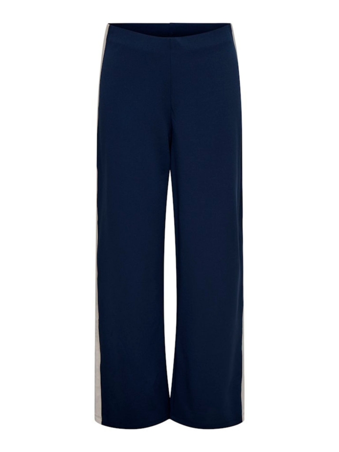 Deze zwarte pantalon is simpel, maar allesbehalve saai! Het minimalistische ontwerp zonder zakken zorgt voor een strakke, elegante look, terwijl de wijde pijp een moderne twist geeft. De contrasterende baan of glitterdetail, langs de zijkant van het been maakt deze broek extra bijzonder. Perfect te combineren met een blouse of feestelijke top voor een look die moeiteloos chique en trendy is.