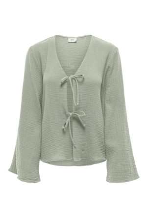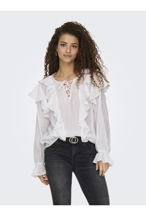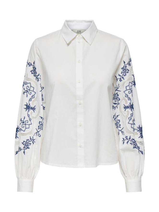 Deze blouse van JDY blinkt uit om z'n mouwen. De mouwen hebben een ballonvorm en hebben een prachtig borduusel in het blauw. De blouse is een recht model en valt iets wijder.