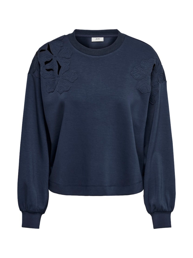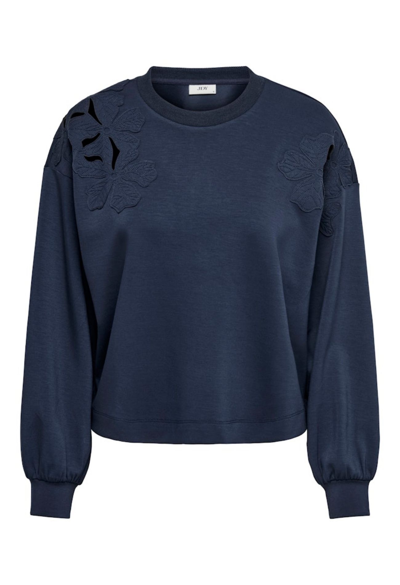 Deze sweater is wat dunner en heeft prachtige opgestikte bloemen op de schouders. Passend op iedere jeans maar doet het ook goed op een mooie pantalon.
