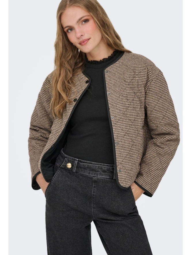 Sjiecke dames shacket in een fijne bruine pied de poule print. Dit jasje draag je eenvoudig over een effen item. Mix en Match!