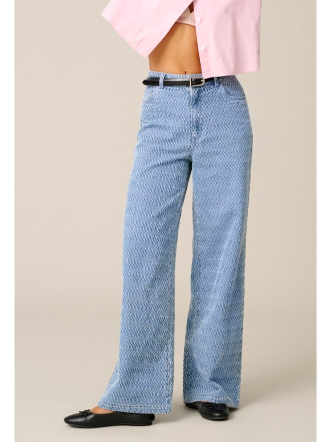 Hou je van jeans die net even anders zijn? Dan is deze denim echt iets voor jou! Deze wide fit met een high waist is een echte blikvanger en heeft een prachtige wassing met een golvend patroon op de stof. Wist je dat we het spijkerjack ook hebben? Je vind hem onder art.nr. 15362003
