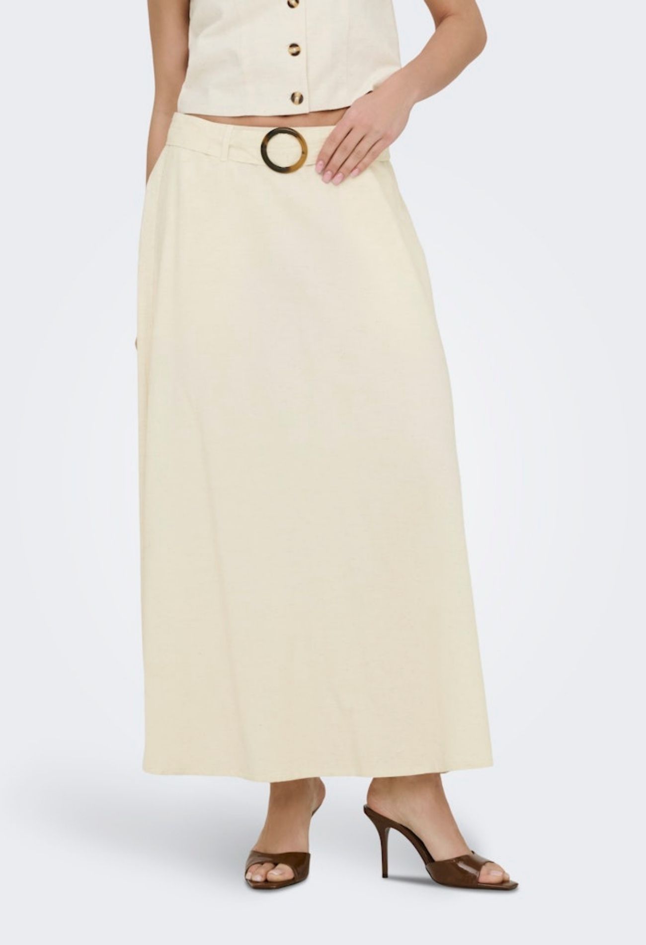 Deze elegante lange rok is vervaardigd uit een hoogwaardige linnen blend, waardoor hij licht, ademend en perfect is voor warmere dagen. De stof combineert het natuurlijke karakter van linnen met extra zachtheid en draagcomfort, zodat je moeiteloos stijl en gemak ervaart.