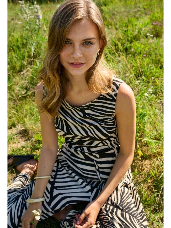 Ga voor een frisse, moeiteloze look met deze zomerse mouwloze top. Gemaakt van een luchtige crinkle stof die niet alleen comfortabel draagt, maar ook een subtiele, speelse textuur toevoegt. Het omsluitende model sluit mooi aan op het lichaam en zorgt voor een vrouwelijke, flatterende pasvorm. De speelse strepen geven de top een vrolijke en moderne uitstraling.