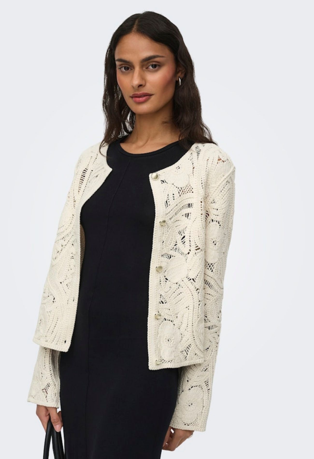Dit seizoen steel jij de show met dit stijlvolle crochet vestje, dé must-have voor een luchtige en vrouwelijke look. Het verfijnde haakwerk geeft het vest een speelse, handgemaakte uitstraling die perfect aansluit bij de huidige boho-chic trend.