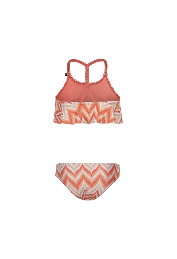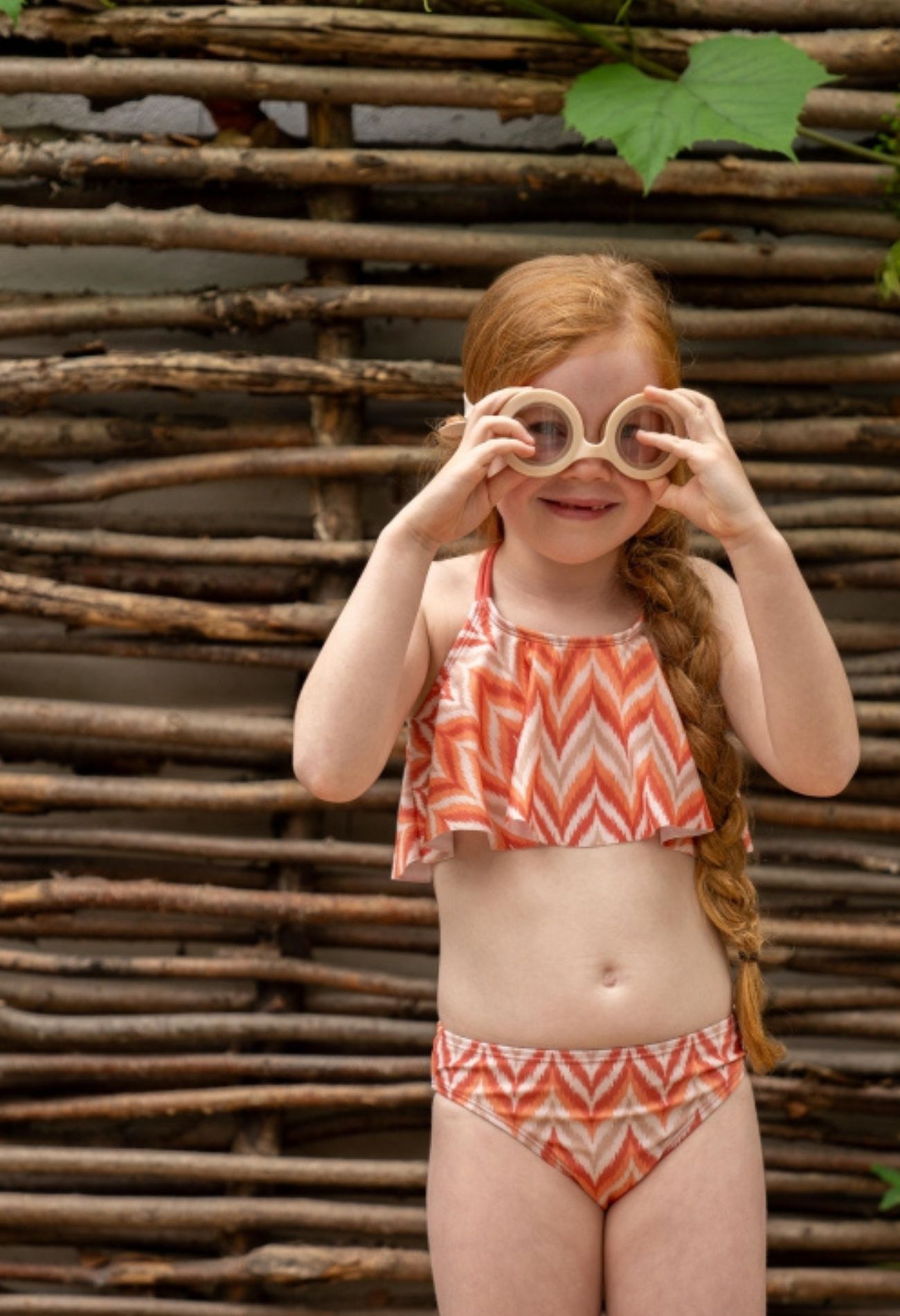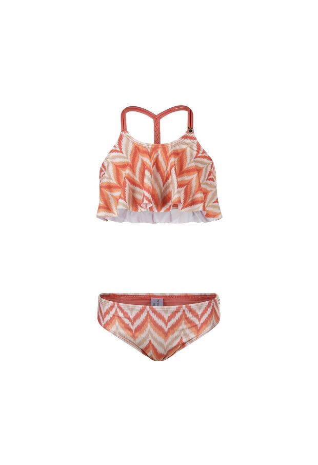 Deze te leuke bikini in de maatserie 104 tot 164 heeft een mooie top met overhangende losse stof en een mooie vlecht achter op de schouder!