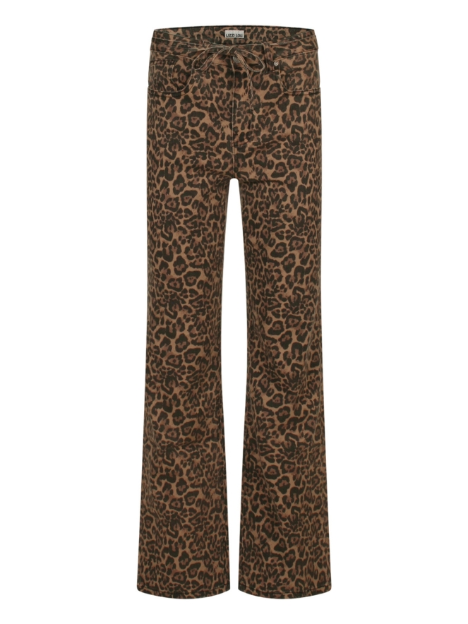 Rechte pijp, panterprint, 5 pockets met een bijpassend strikceintuurtje in dezelfde stijl. Leuke opvallende broek met een mooie panterprint met een fijne dosis stretch. High waist.