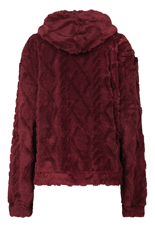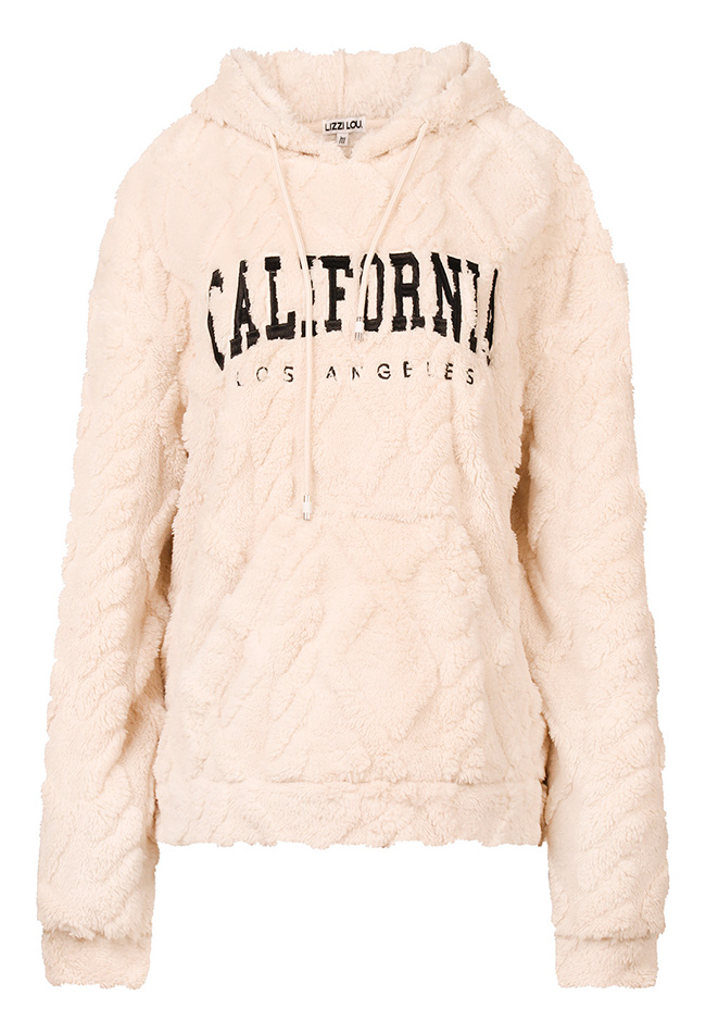 Heerlijk zachte Jacquard fake fur fleece met een mooie tekstborduur voorop. Deze sweater heeft een capuchon en een kangeroezak. Comfortabel en warm!