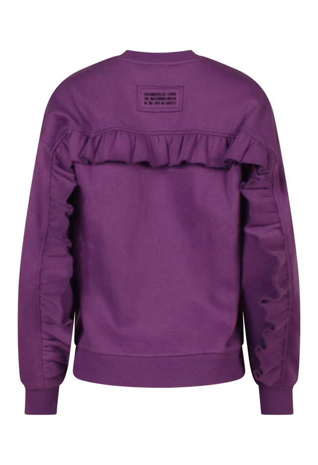 Comfortabele sweat met speelse ruches op de achterkant en mouwen. Op de achterzijde zit een label met de tekst: ?Los Angeles, CA Living the Hollywood dream in the city of angels.? Een casual trui met een trendy twist.