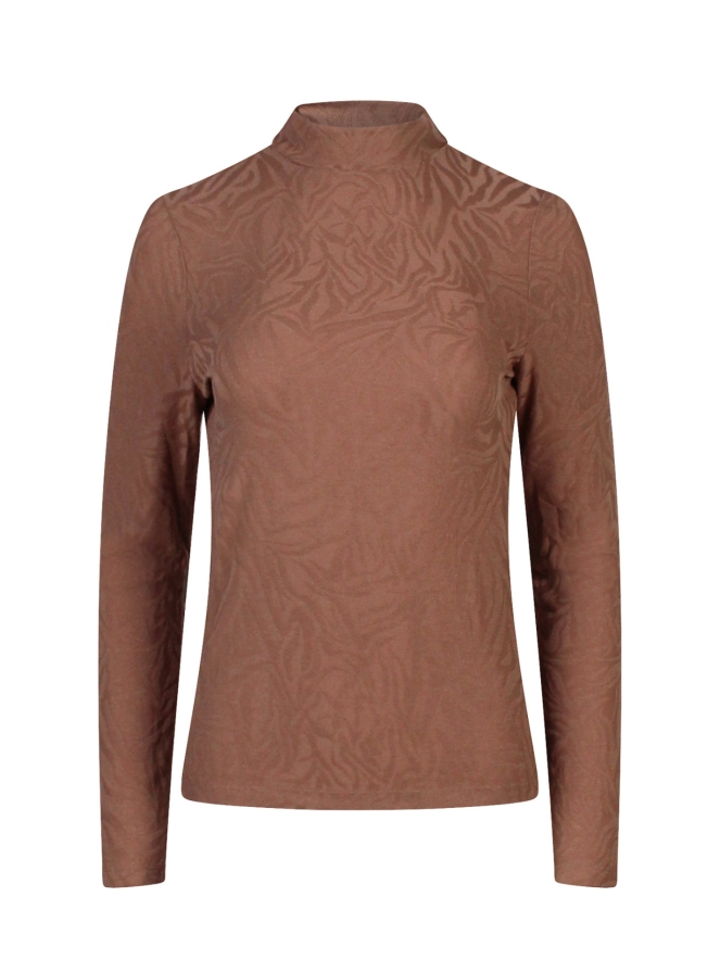 Dit shirt is een aansluitend model en heeft een zebraprint verweven in de stof. Met fijne turtleneck voor de frisse dagen. Dit kledingstuk doet het leuk onder een blazer!