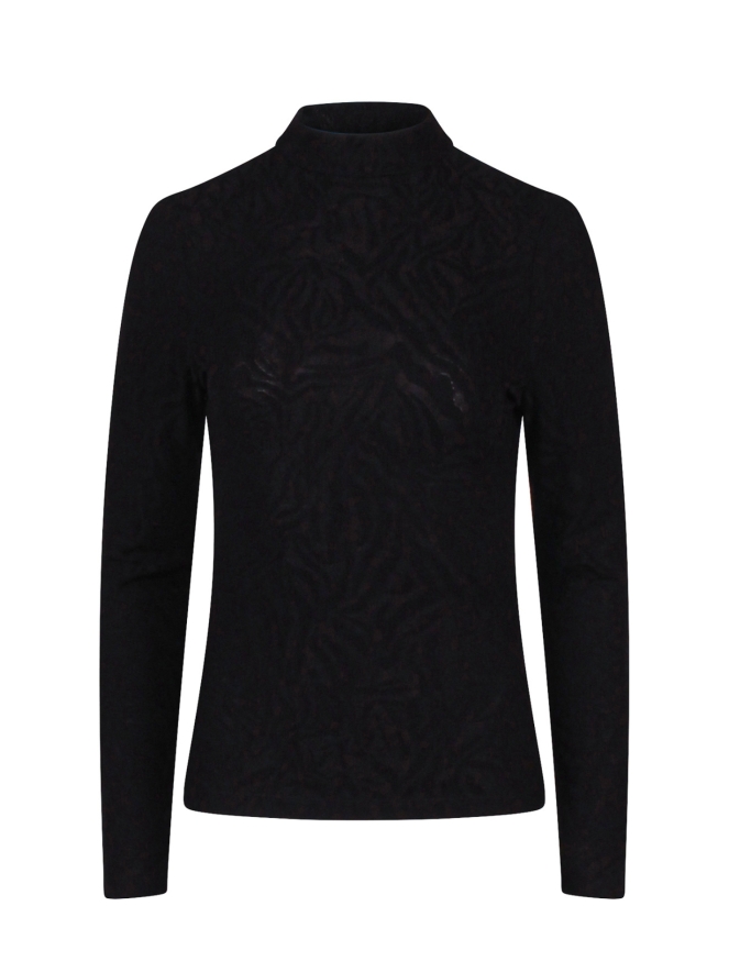 Dit shirt is een aansluitend model en heeft een zebraprint verweven in de stof. Met fijne turtleneck voor de frisse dagen. Dit kledingstuk doet het leuk onder een blazer!