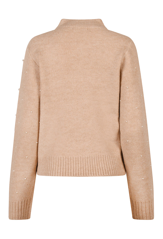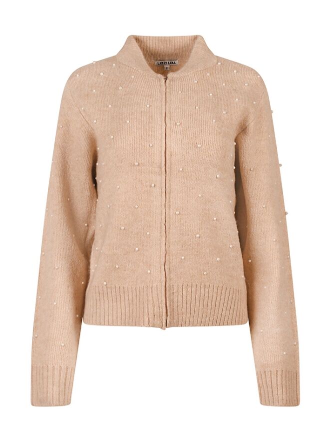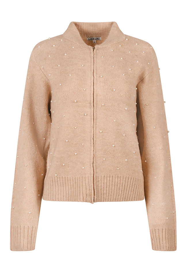 Gemaakt van een comfortabele brei, heeft dit vest een trendy baseball jack model met een sportieve ritssluiting. De gestrooide parels op de voorkant, die elegant doorlopen over de mouwen naar de achterkant, geven het item een vrouwelijke en verfijnde touch. Perfect te combineren met een sportieve pantalon met streepdessin en een vlotte sneaker voor een moderne, casual look met een twist.