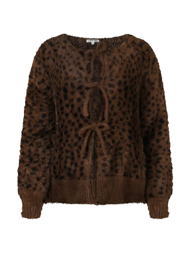 Helemaal hot en trendy dit seizoen zijn de featheryarn strik vestjes. In combinatie met deze mooie panterprint een echte eyecatcher!