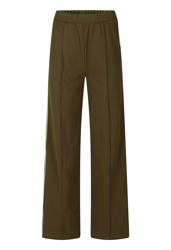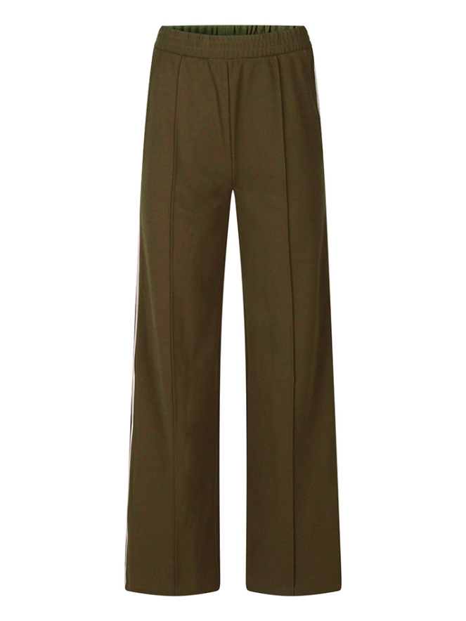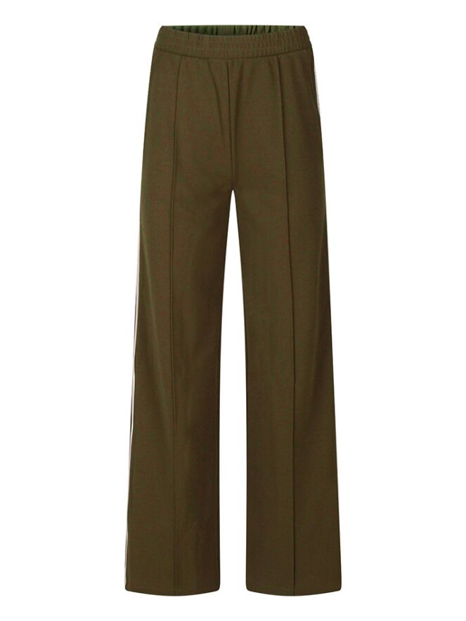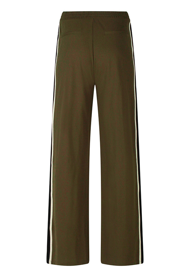 Ontzettend leuke trendy pantalon van ons eigen merk Lizzy Lou. Deze pantalon met steekzakken draagt comfortabel door de elastische tailleband en heeft een opnaadje voor over het been. De opgestikte gestreepte band aan de de zijkant van het been is niet te missen en geeft deze broek een sportieve uitstraling. Hou je van pakken? Een bijpassend netjes vestje vind je onder art.nr. W10423