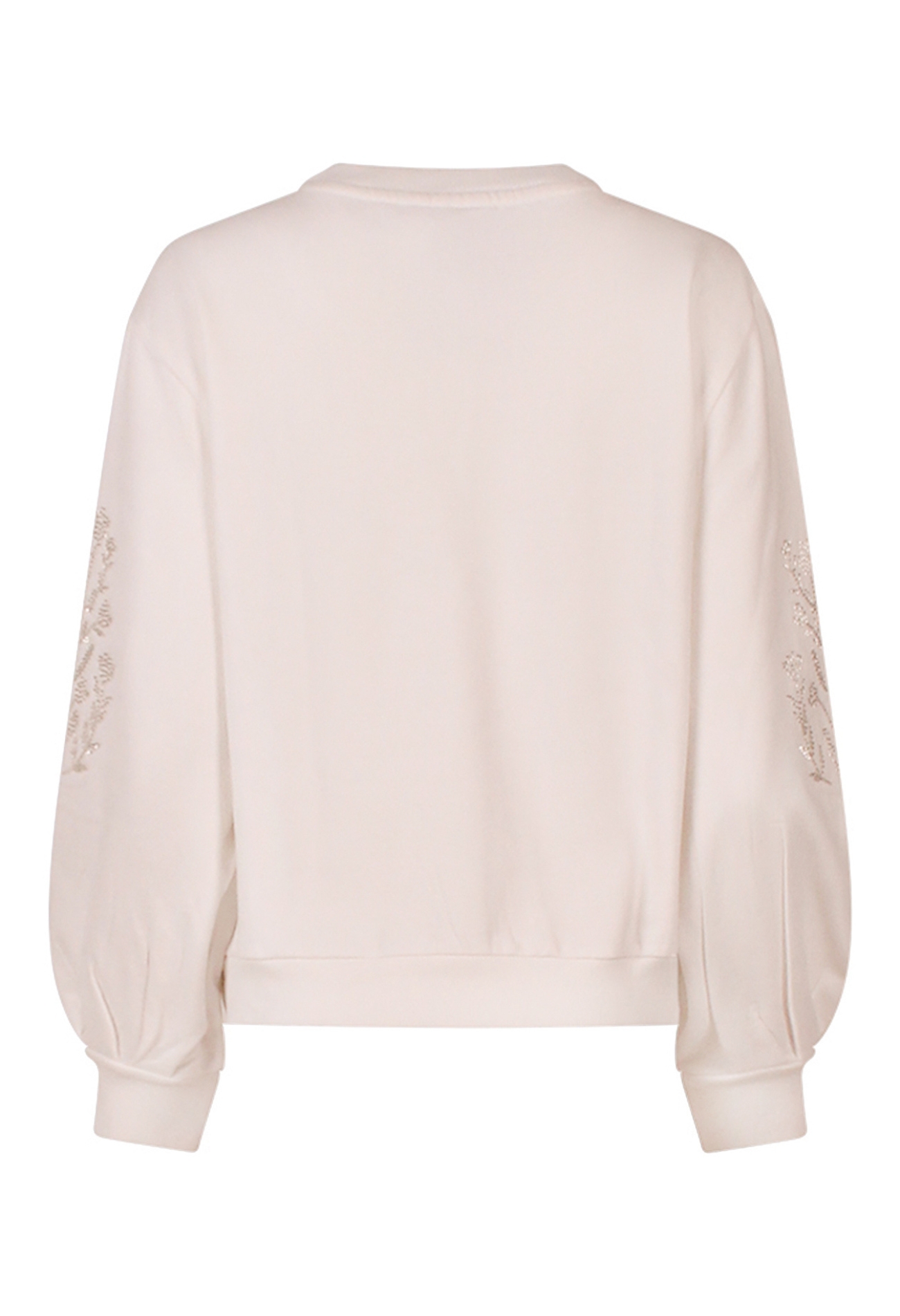 Effen gekleurde sweater met op de pofmouw kraaltjes in een bloemenpatroon. Deze trendy sweater draag je als casual item eenvoudig op jeans.