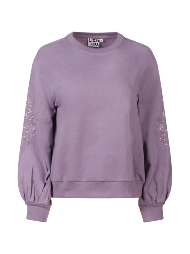 Effen gekleurde sweater met op de pofmouw kraaltjes in een bloemenpatroon. Deze trendy sweater draag je als casual item eenvoudig op jeans.
