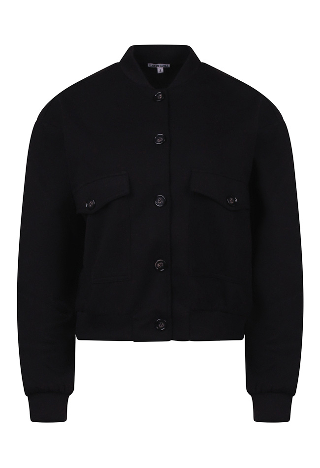 Dit vestje in bomber model doet het goed op een jeans, mooie pantalon of rok! Sluit met knopen en heeft twee klepzakken.