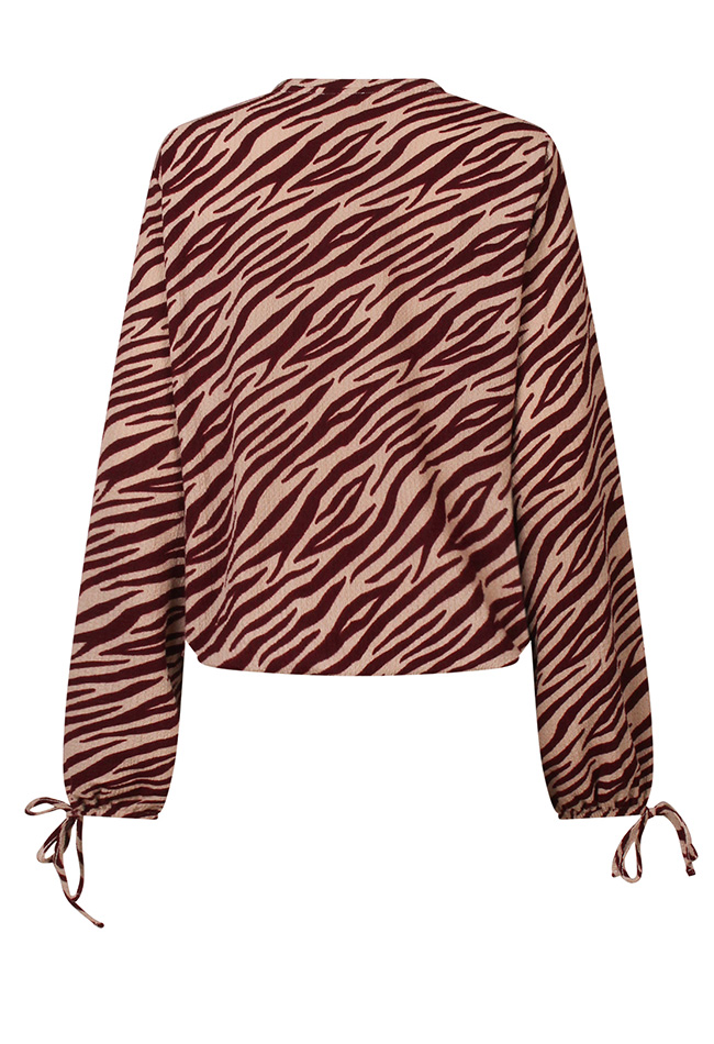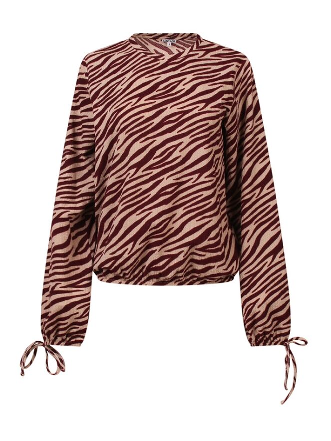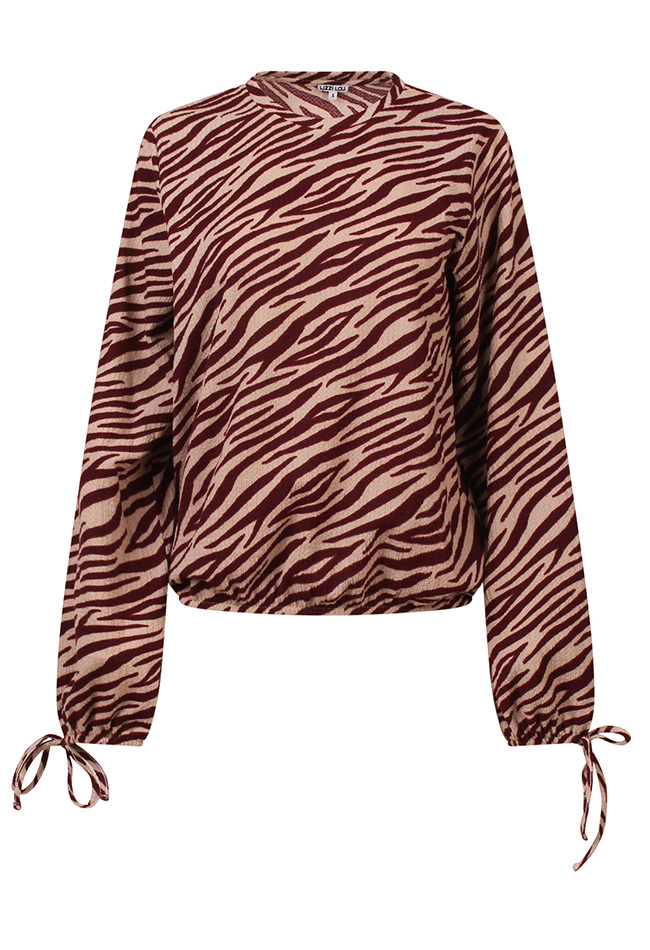 Mooie top van Lizzy Lou in een opvallende zebra print. De top heeft in het uiteinde van de mouwen een koordje en onderin de taille een elastiek.