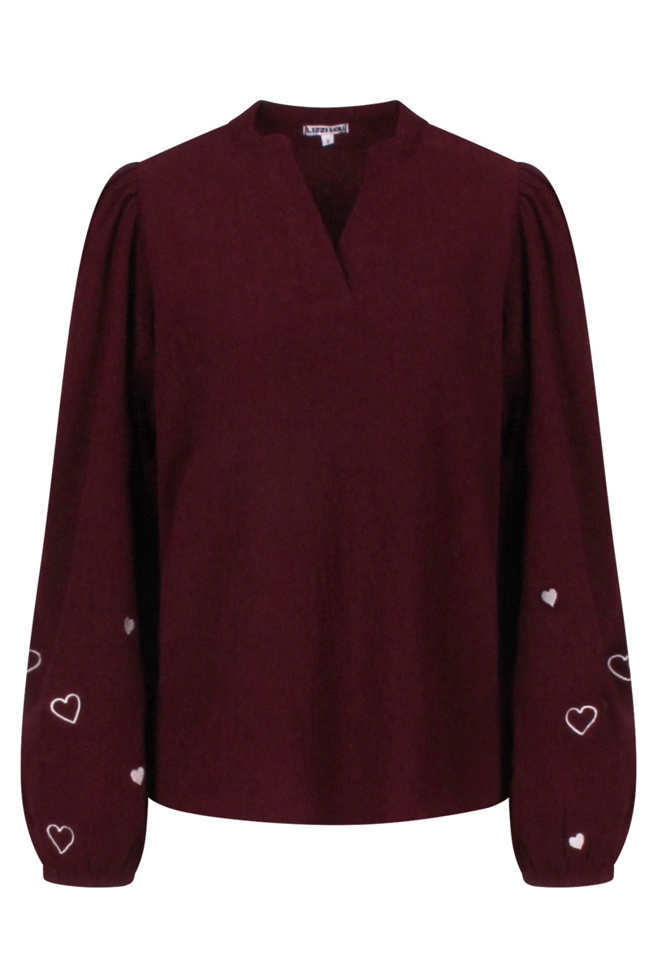 Trendy top van crincle met een kleine V-hals. Deze top heeft een ballonmouw met geborduurde hartjes. Super sweet!