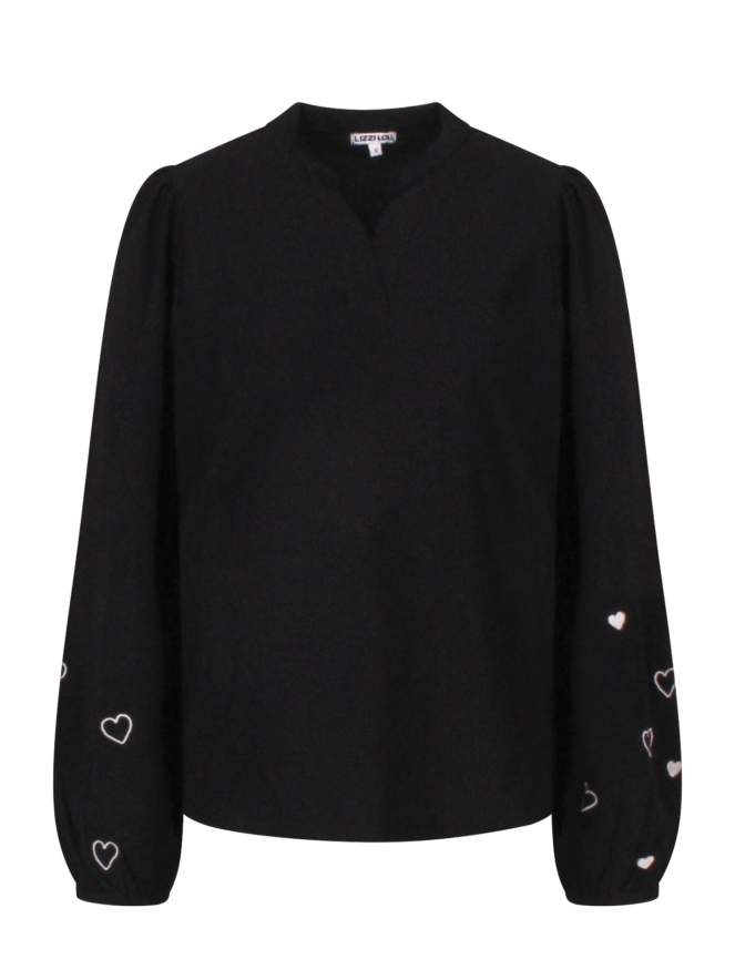 Trendy top van crincle met een kleine V-hals. Deze top heeft een ballonmouw met geborduurde hartjes. Super sweet!