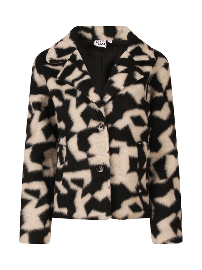 Wollook jasje in een colbertmodel met een grafisch design. Dit jack is nylon gevoerd, heeft twee steekzakken en sluit met knopen. Leuke tussenjas voor een trendy look.