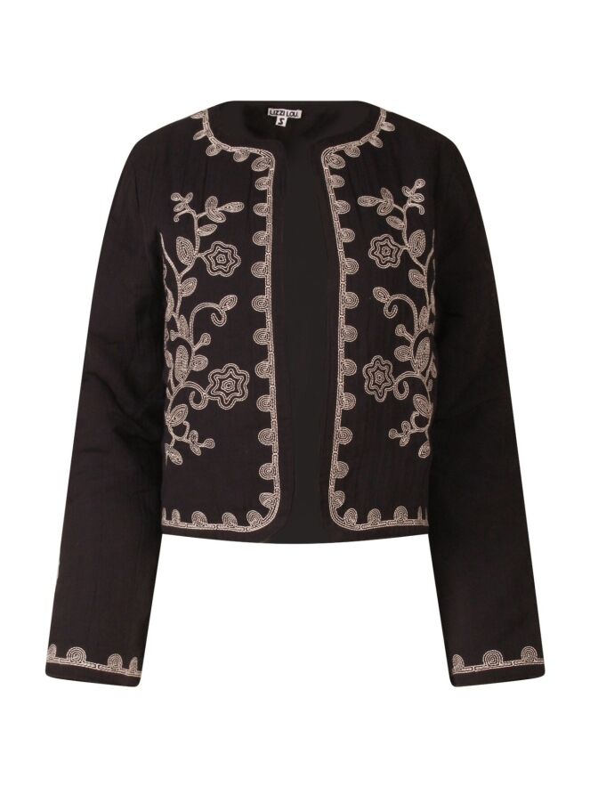 Dit gevoerde damesjack is gemaakt van zachte mousseline en afgewerkt met verfijnde borduursels op de voorkant en bij de zoom van de mouwen. De lichte padding zorgt voor comfort en warmte zonder in te leveren op stijl. Draag het jack over een jurk of met een jeans voor een moeiteloze, vrouwelijke look, perfect voor frisse dagen met een fashionable twist.