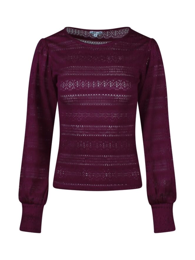 Ajour top met lange pofmouwen.