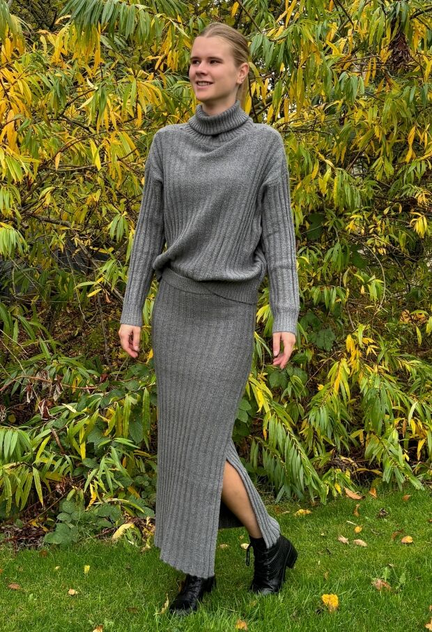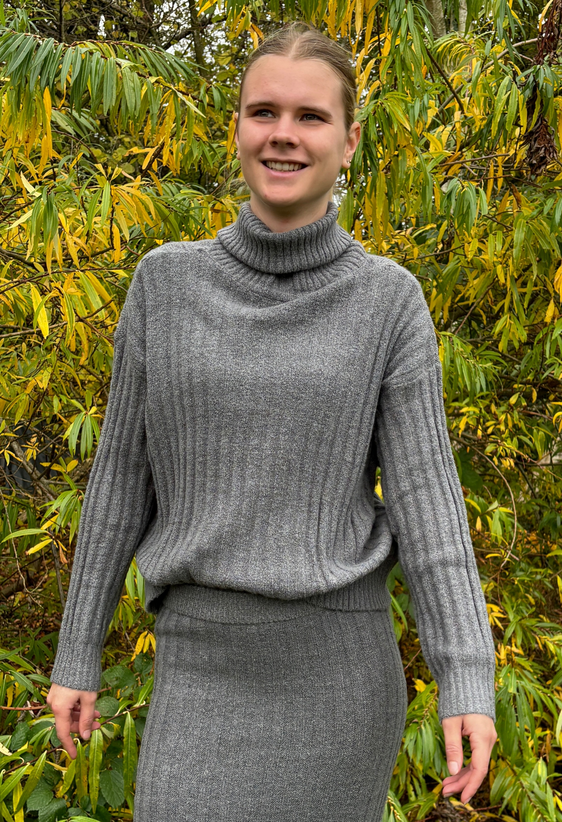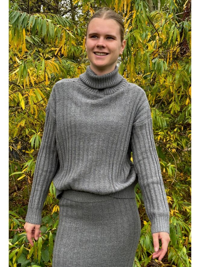 Warme comfy trui van Lizzy Lou. Deze trui heeft een warme omslagcol waar je U tegen zegt en valt comfortabel oversized om je heen. Wist je dat we een bijpassende gebreide rok hebben in dezelfde kleur? Go co-ord or not ;-) W90405