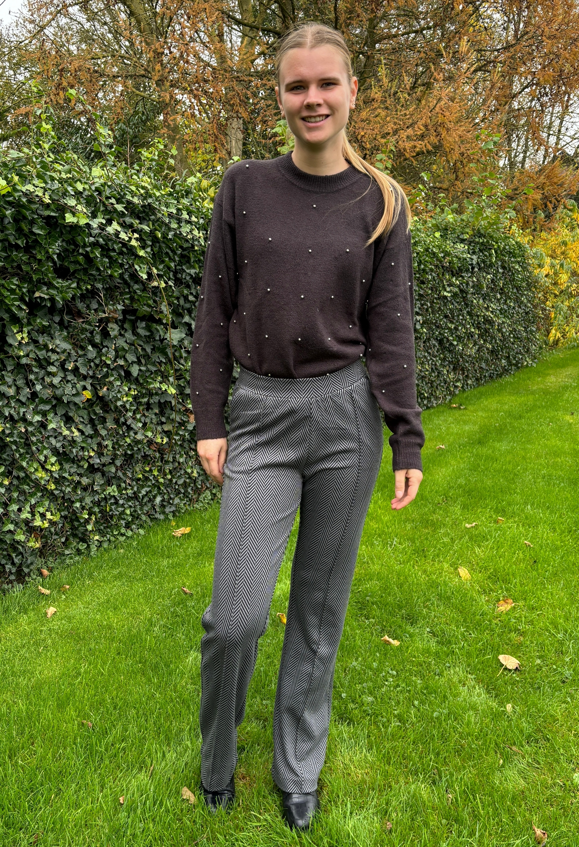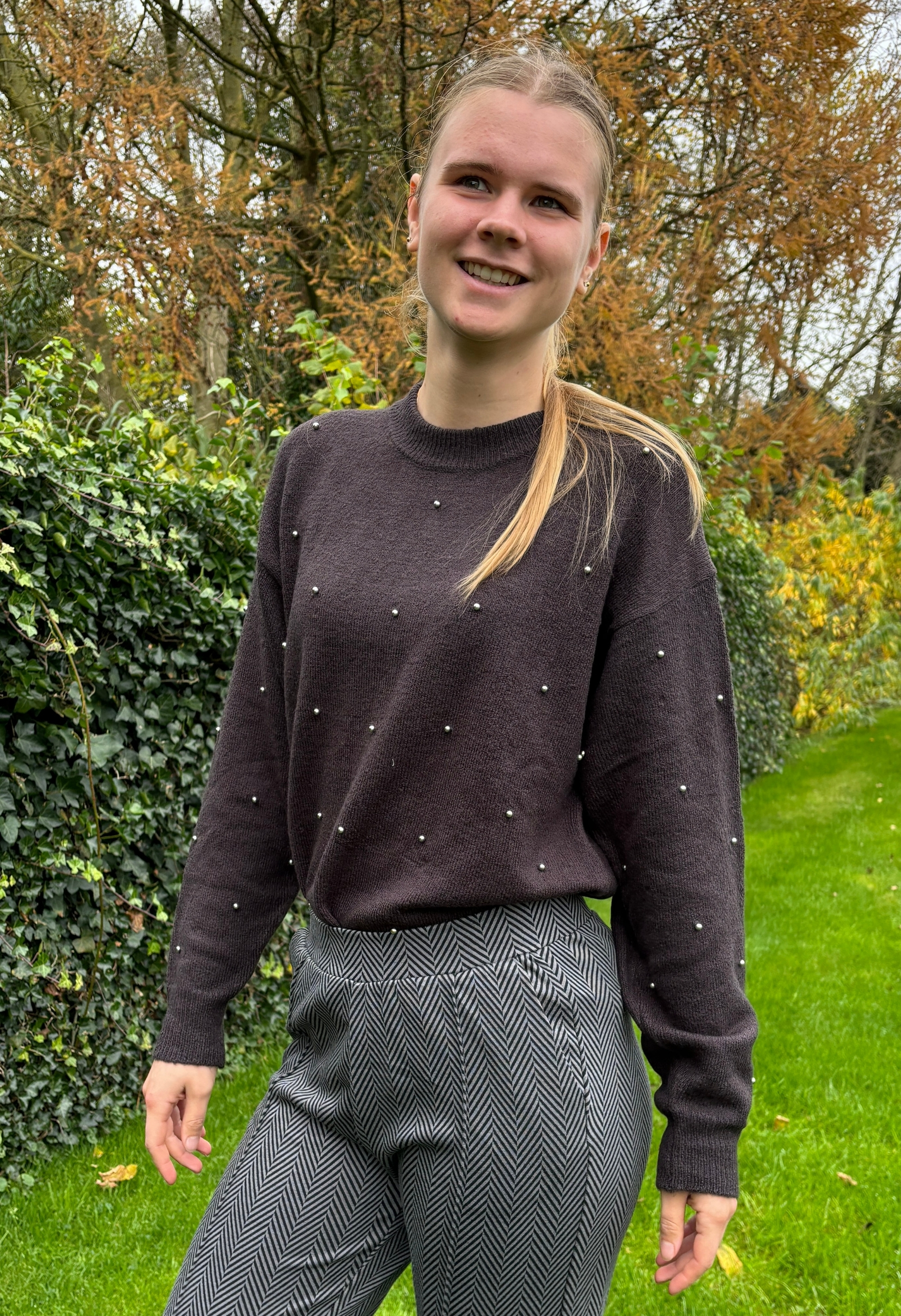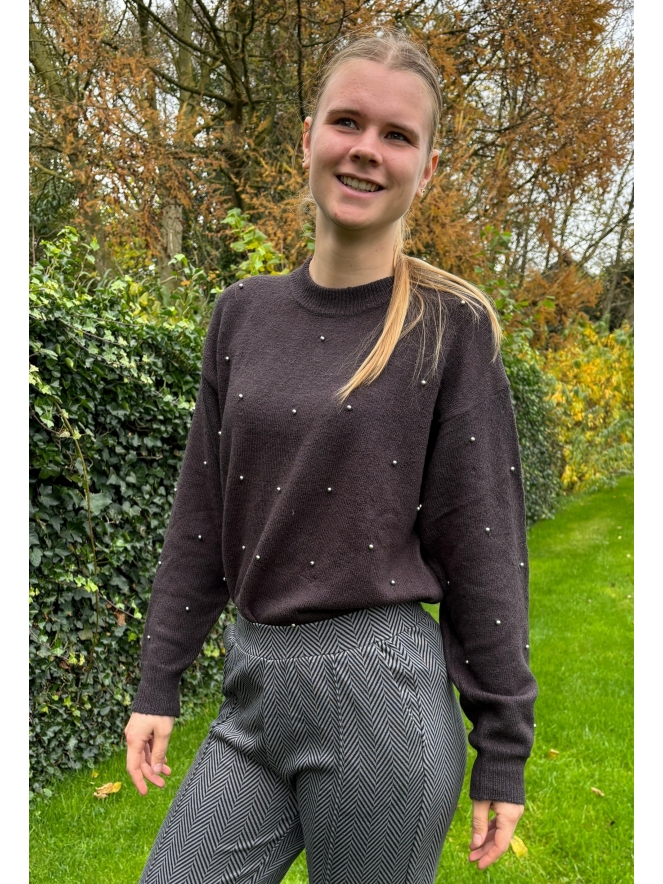 Fijne trui van Lizzy Lou met opgestikte kraaltjes voor een verassende look! Deze trui is lekker zacht en geeft jou een comfort feel! Leuk te combineren op een jeansrok of spijkerbroek.