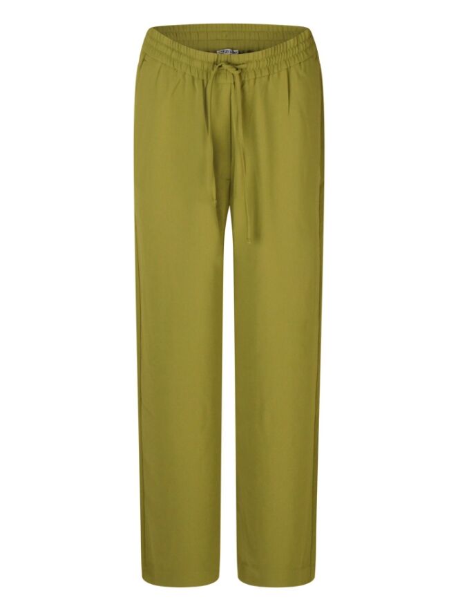 Lange broek van ons merk Lizzy Lou. Deze broek heeft een wijde pijp en heeft een elastische tailleband met een koordje wat lekker draagt. Met heerlijke steekzakken en achterop sier paspelzakken.