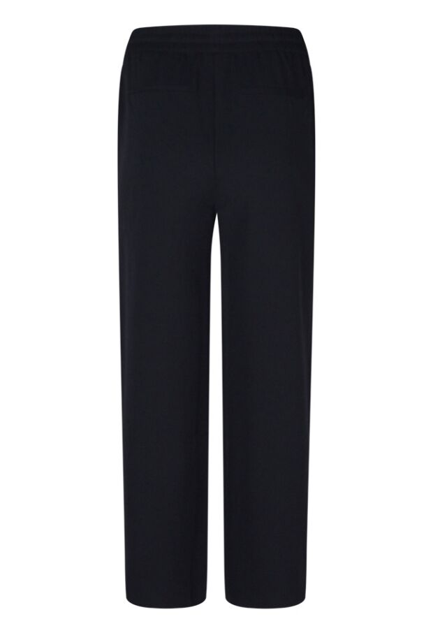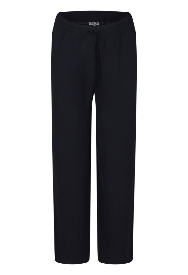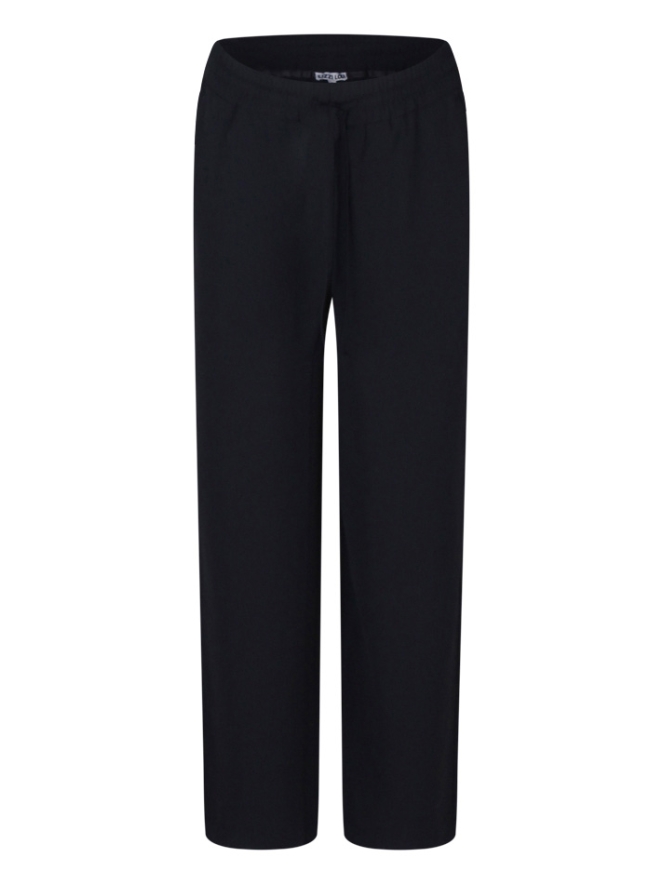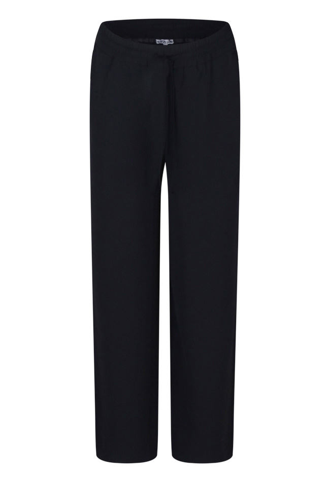 Lange broek van ons merk Lizzy Lou. Deze broek heeft een wijde pijp en heeft een elastische tailleband met een koordje wat lekker draagt. Met heerlijke steekzakken en achterop sier paspelzakken.