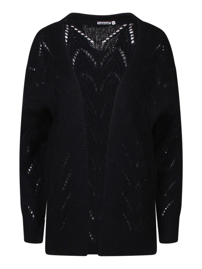 Dit open vest van Lizzy Lou is een wat wijder model en gemaakt van een open ajour breisel. Je draagt het makkelijk over een hemdje, T-shirt of top. De lengte van dit vest valt op de heup.