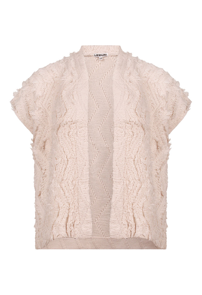 Hou jij van Bohemian beachy? Dan is dit open gilet vestje voor jou gemaakt! Met mooie franjes in een zigzag patroon heeft dit vestje een speels uiterlijk. Makkelijk te combineren met een licht gekleurd shirtje of hemdje eronder.