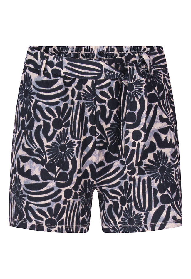 Luchtige en stijlvolle dames short met een trendy crinkle structuur. Het model heeft een comfortabele pasvorm en is voorzien van een vaste strikriem in de taille voor een vrouwelijke en speelse uitstraling. Dankzij de steekzakken is de short niet alleen modieus, maar ook praktisch. De short is verkrijgbaar in 4 verschillende patronen, waardoor er altijd een variant is die bij jouw stijl past. Perfect te combineren met een top of blouse voor een zomerse look.