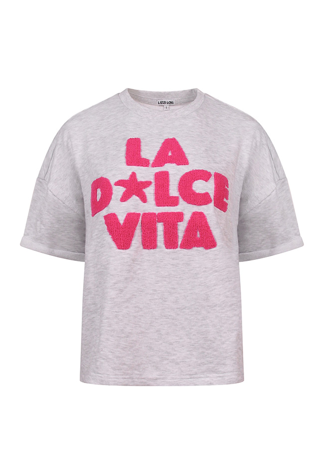 Heerlijk comfortabel dames shirt met een zachte feel. Voorzien van de tekst La Dolce Vita, stijlvol voor een subtiele en luxe uitstraling