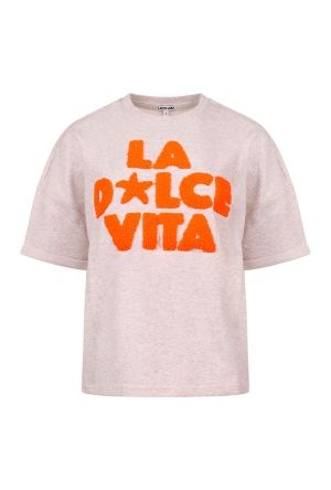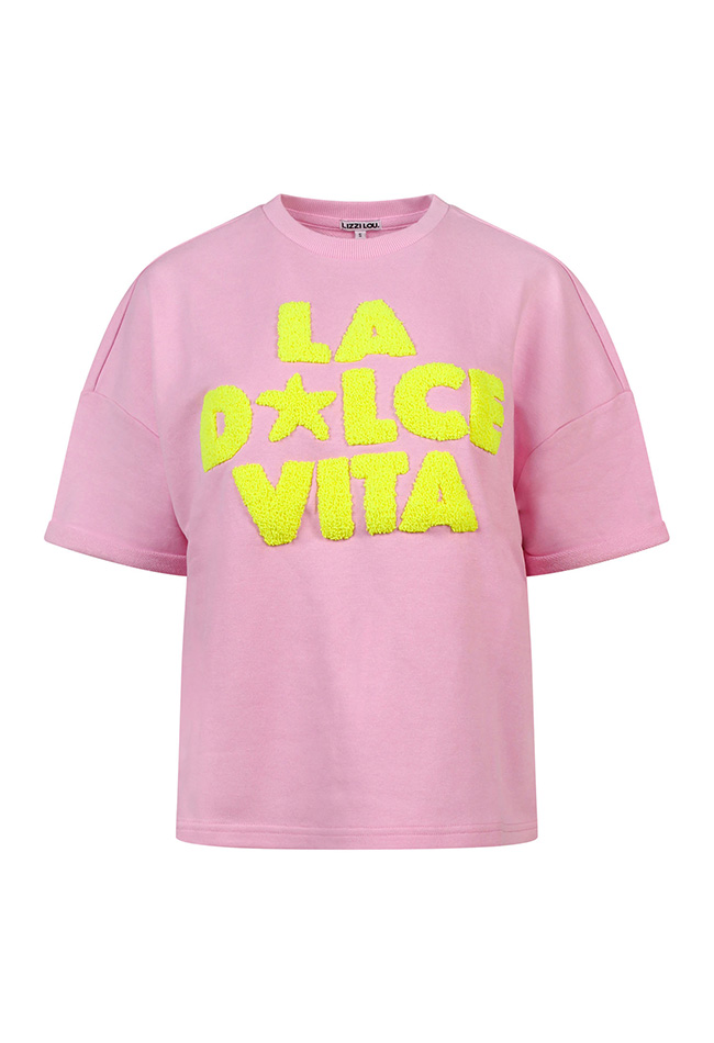 Heerlijk comfortabel dames shirt met een zachte feel. Voorzien van de tekst La Dolce Vita, stijlvol voor een subtiele en luxe uitstraling