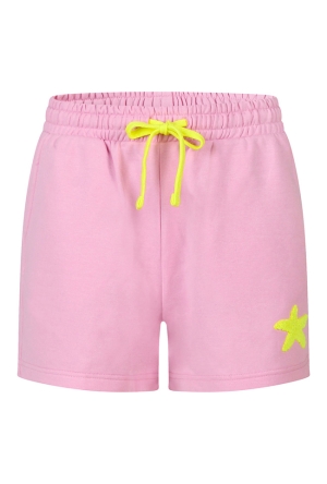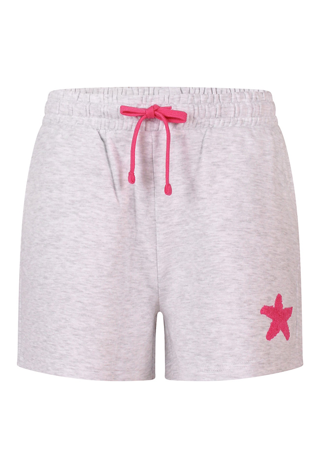Dames korte broek met een comfortabele elastische taille en koordje voor een verstelbare pasvorm. Voorzien van twee handige steekzakken en een speelse applicatie voor een extra modieuze touche.